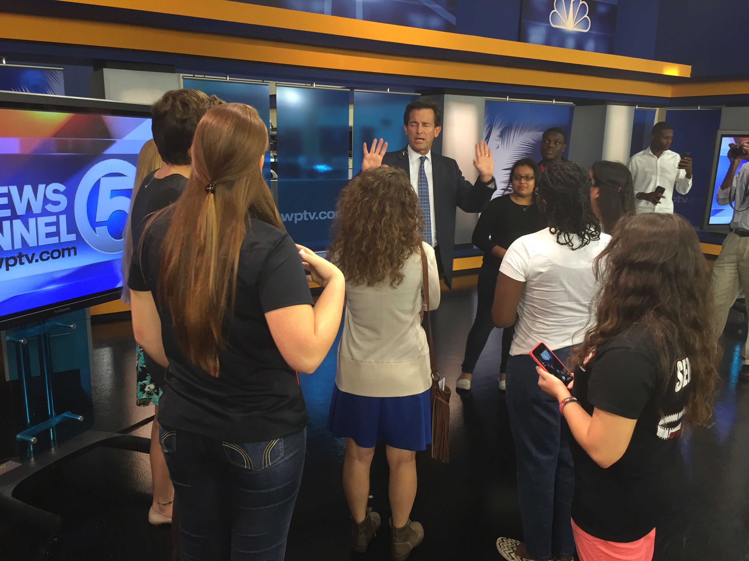 Seminole Ridge Television Production Academy students attended a special “Media & Politics” event at WPTV tonight. Students heard from political writers and reporters and WPTV News anchor Michael Williams. Great experience for our TV journalism students!