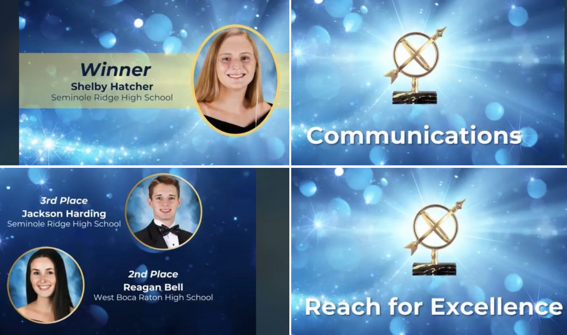 Each year the Palm Beach Post sponsors the Pathfinder Scholarship Awards to honor the best and brightest students in Palm Beach and Martin Counties. Seminole Ridge TV senior Shelby Hatcher won 1st Place in the Communications category and Seminole Ridge TV senior Jackson Harding won 3rd Place in the Reach for Excellence category! We are so proud of both of these Hawks!