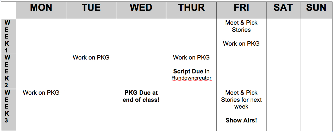 Below are the forms and links you will need to produce your news packages and perform successfully in this class!
