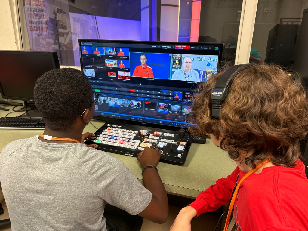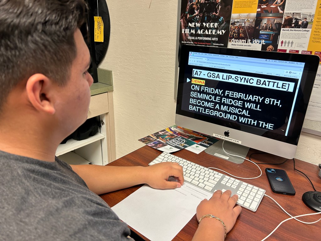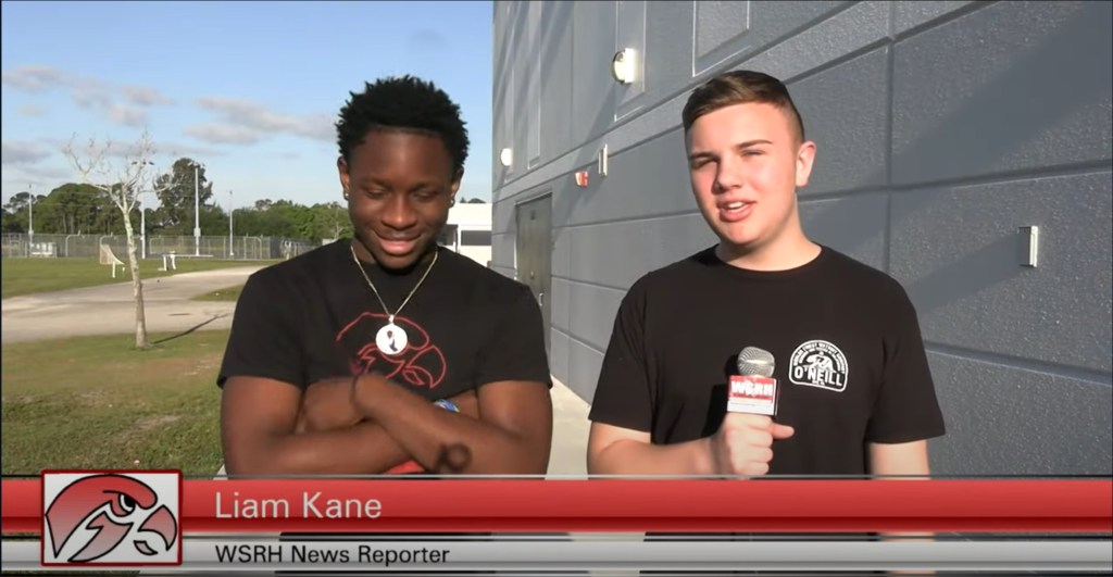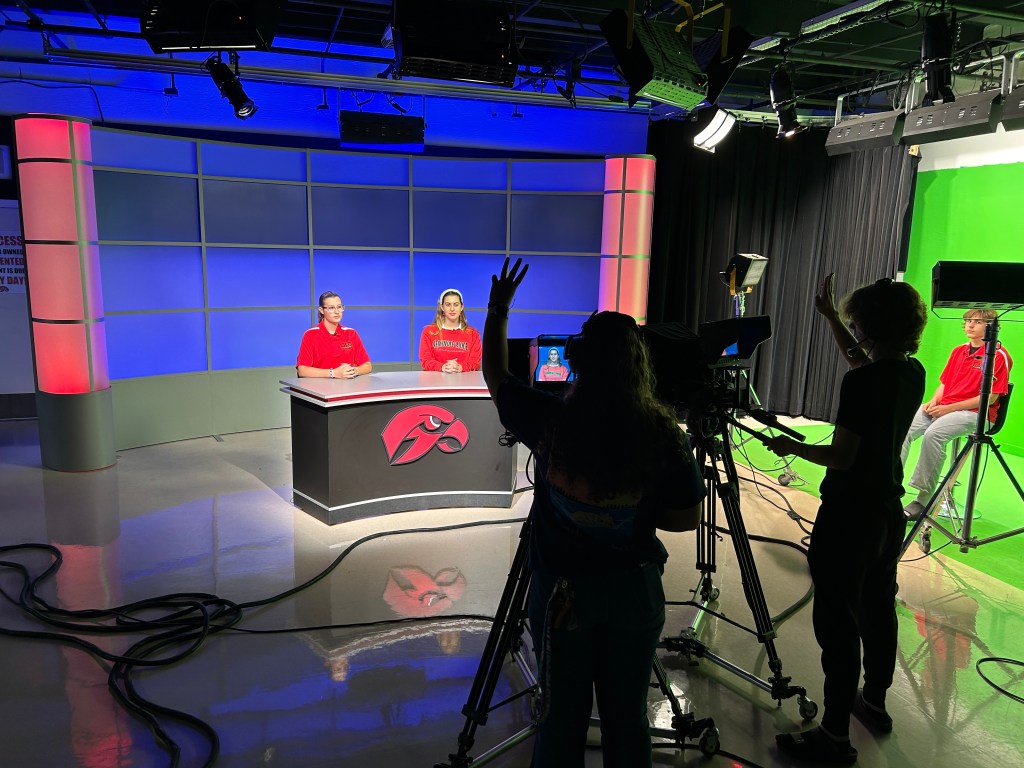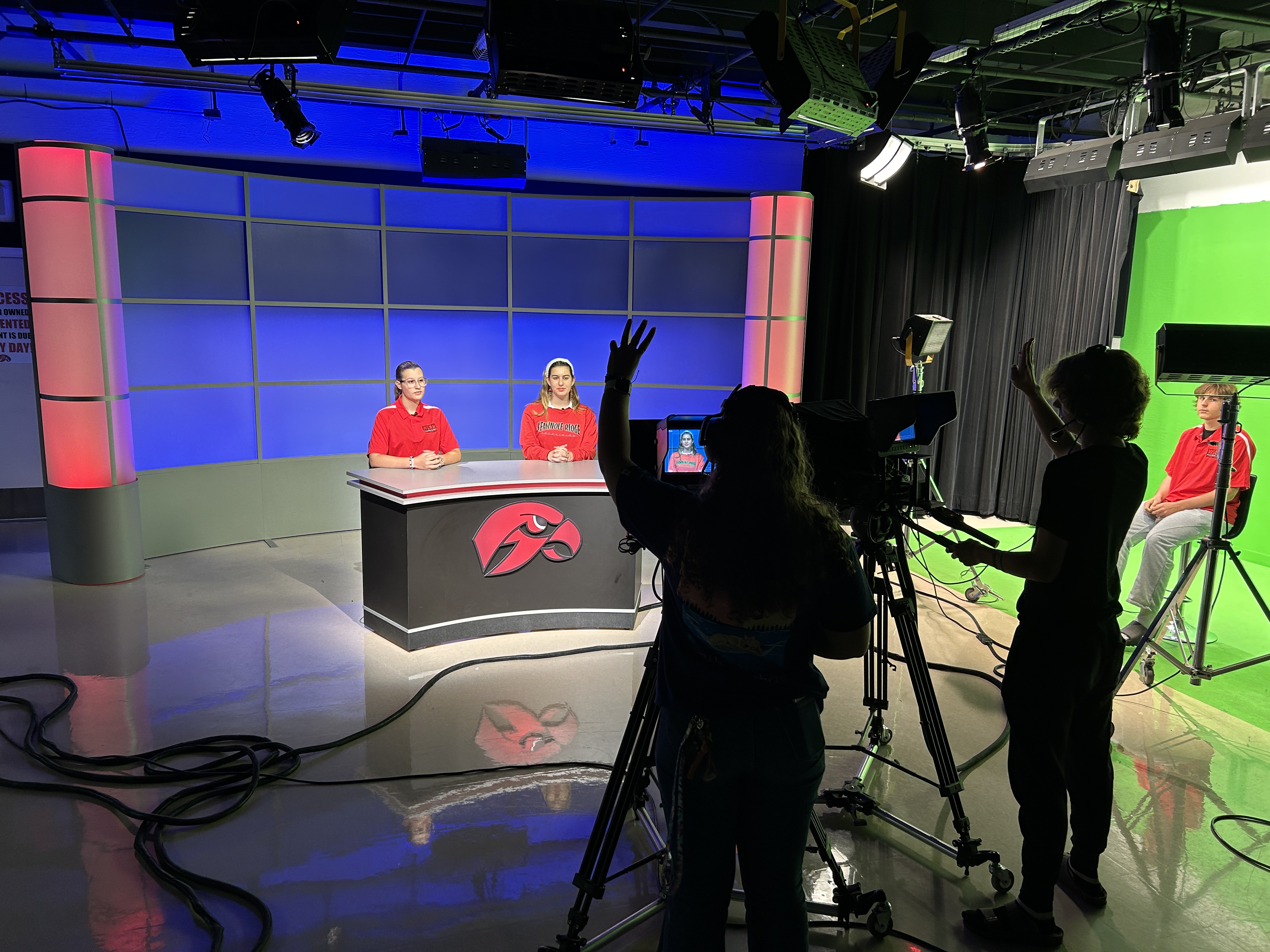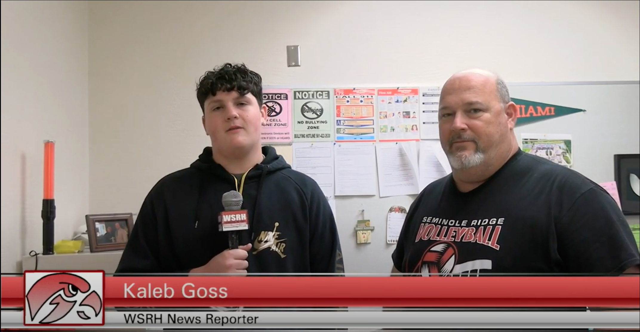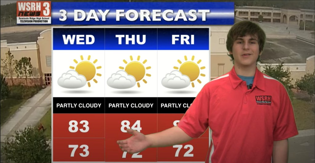 Television Production 2 Classes are responsible for producing our daily morning newscast: WSRH News. This newscast is a 10-minute-long program that features anchors at our news desk, several reporters and photojournalists reporting from across campus, a chroma-keyed weather segment, a sports anchor, a sports reporter, commercials and public service announcements. Each day, more than 2,500 students and staff members watch our newscast. WSRH News is The Leading Source for News at Seminole Ridge High School.